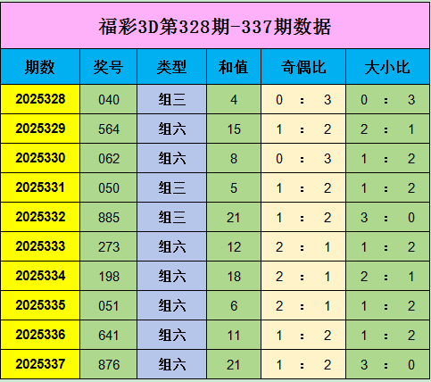 王林福彩3D奖号338期保举: